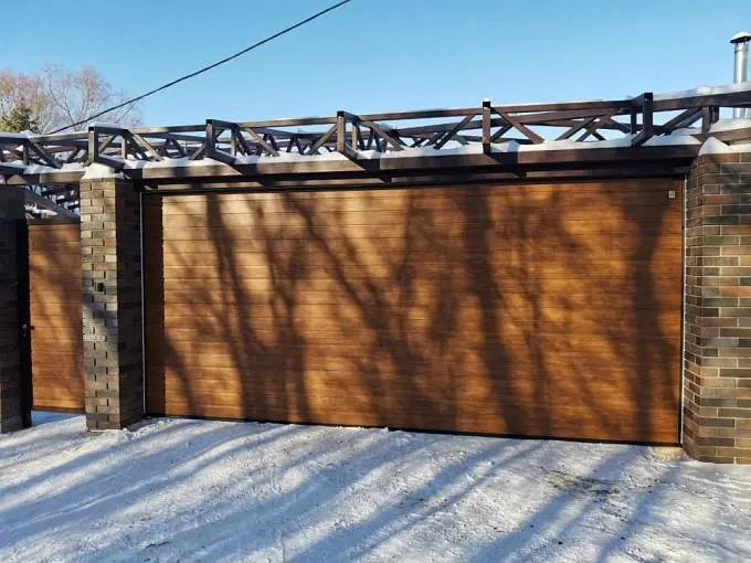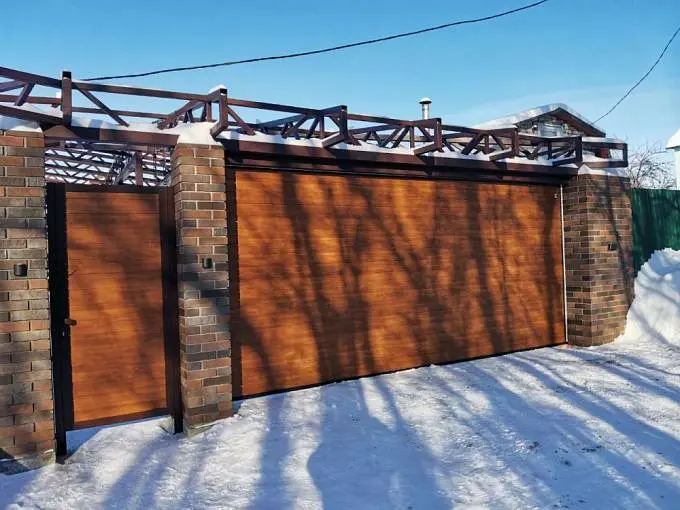S-гофр, цвет темный дуб, с автоматическим управлением, торсионные пружины, с калиткой
