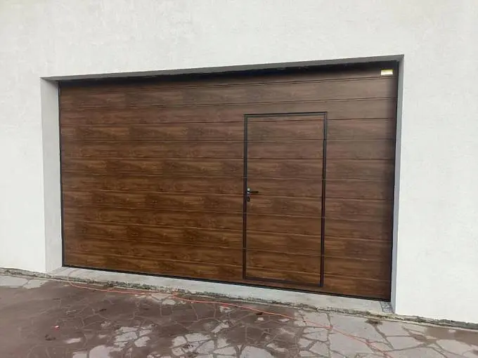 Читать весь отзыв в ОП Центр-РВА купили секционные ворота Престиж в цвете темный шоколад, получилось очень красиво, под крышу подошли идеально.