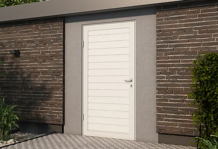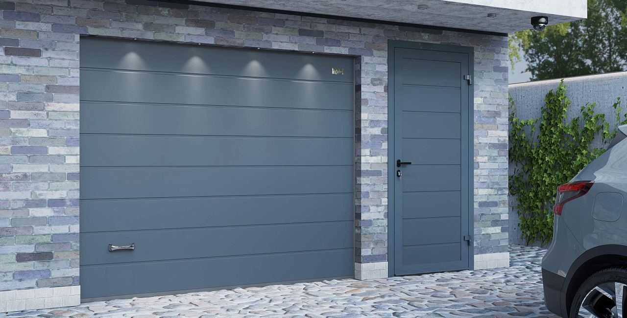 Секционные двери в гараж обеспечивают удобный пешеходный доступ и упрощают рутинные задачи. Вам не придется поднимать массивное полотно, чтобы зайти в гараж или выйти из него. Боковые двери гармонично сочетаются с гаражными воротами.